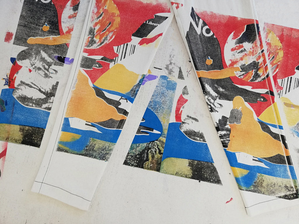 We’ve worked with Orto since our SS19 collection No Address Needed to Join. Able to print on a range of materials their previous work for us has included recycled nylon tents, recycled unpicked denim, organic cotton denims, jerseys.