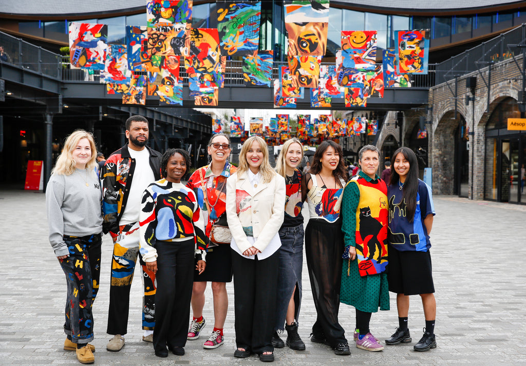 As a continuation of our All Our Stories collection, which launched during London Fashion Week in June 2021 – we created a Flag Art installation at Coal Drops Yard. The installation, consisting of 90 colourful, illustrated flags, which stretch between the iconic roofs of Coal Drops Yard, is Bethany’s first ever large-scale artwork. The piece was displayed from the 8th of July to 5 September 2021.